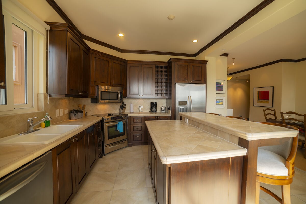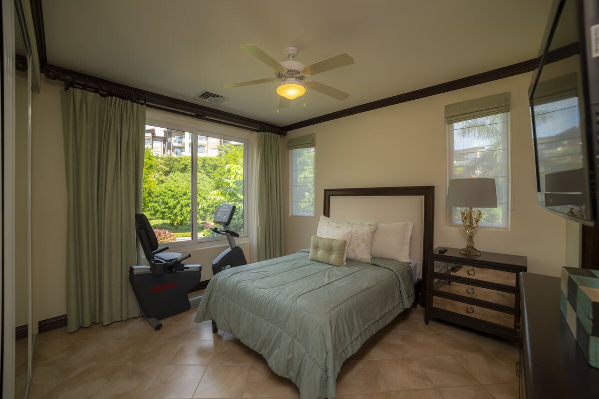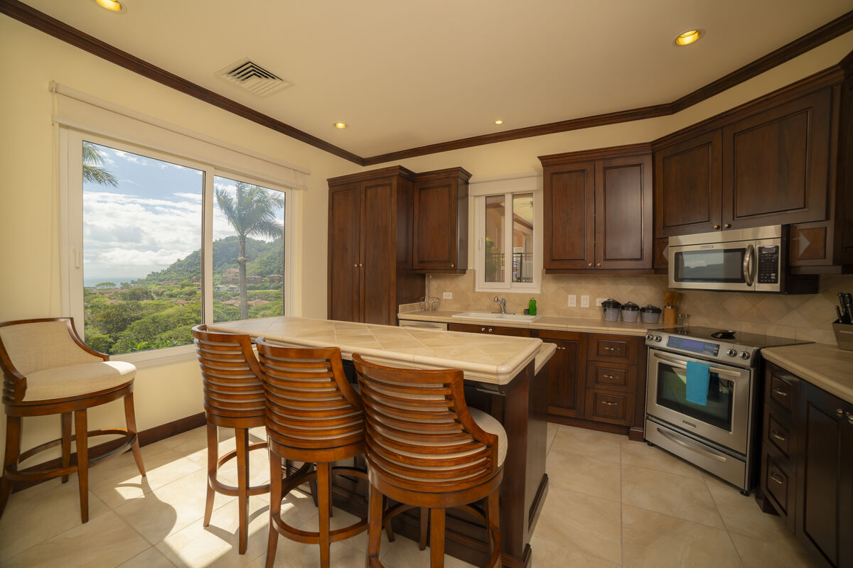 The finishes are characteristic of the Los Sueños communities, with imported Italian ceramic tiles, 8-foot Costa Rican hardwood doors and cupboards, 10-foot ceilings, crown moldings throughout, dual-paned windows, and energy-efficient air conditioning systems.