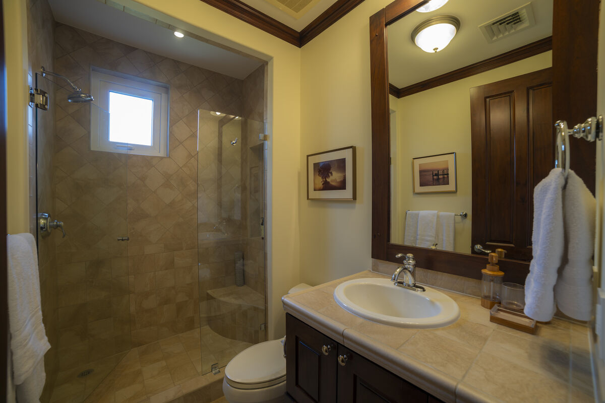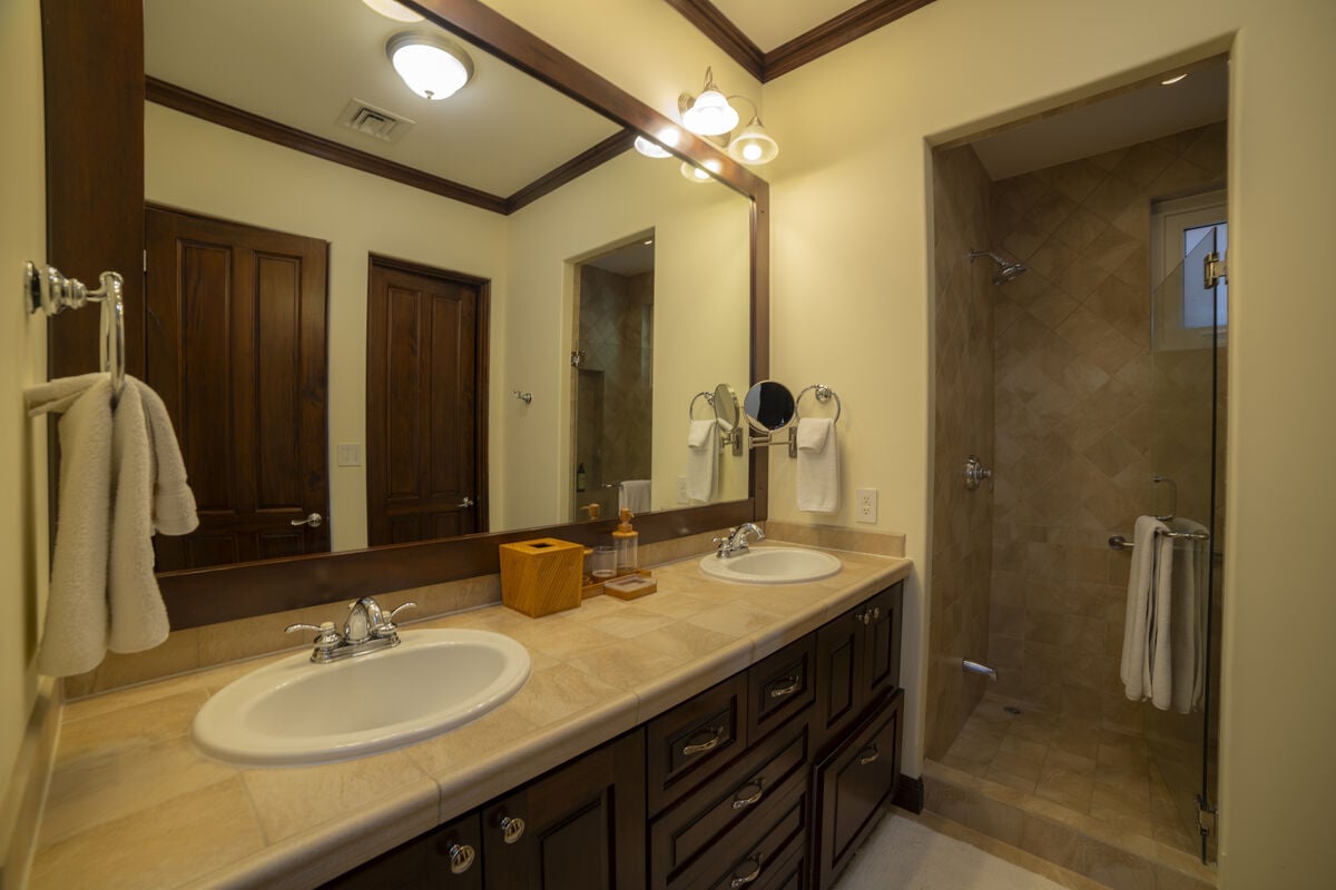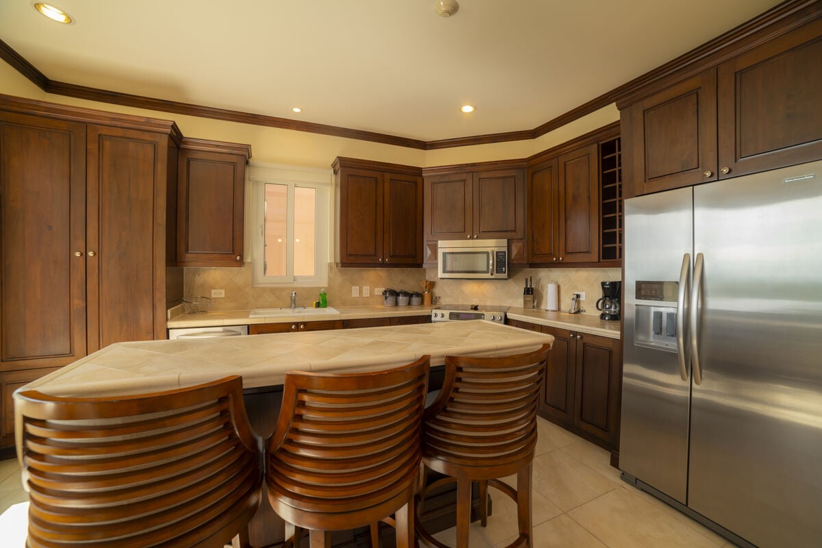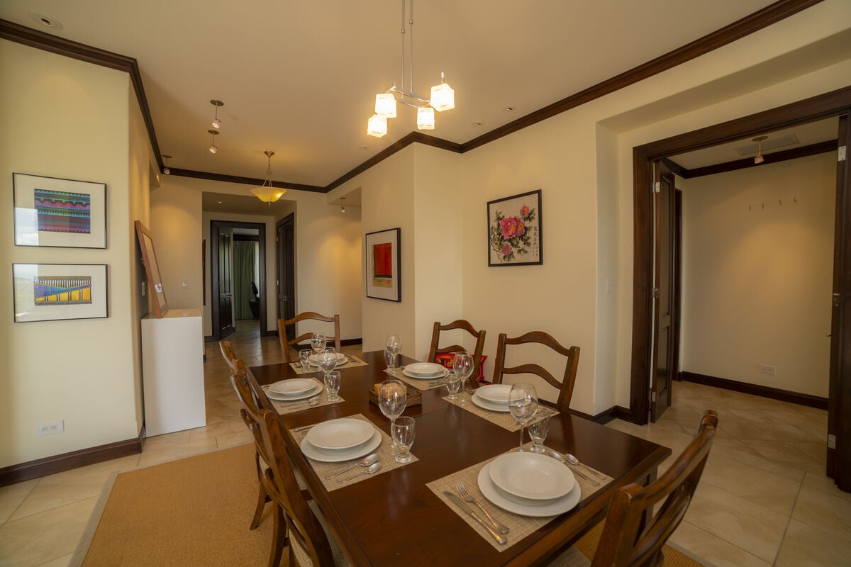 The finishes are characteristic of the Los Sueños communities, with imported Italian ceramic tiles, 8-foot Costa Rican hardwood doors and cupboards, 10-foot ceilings, crown moldings throughout, dual-paned windows, and energy-efficient air conditioning systems.