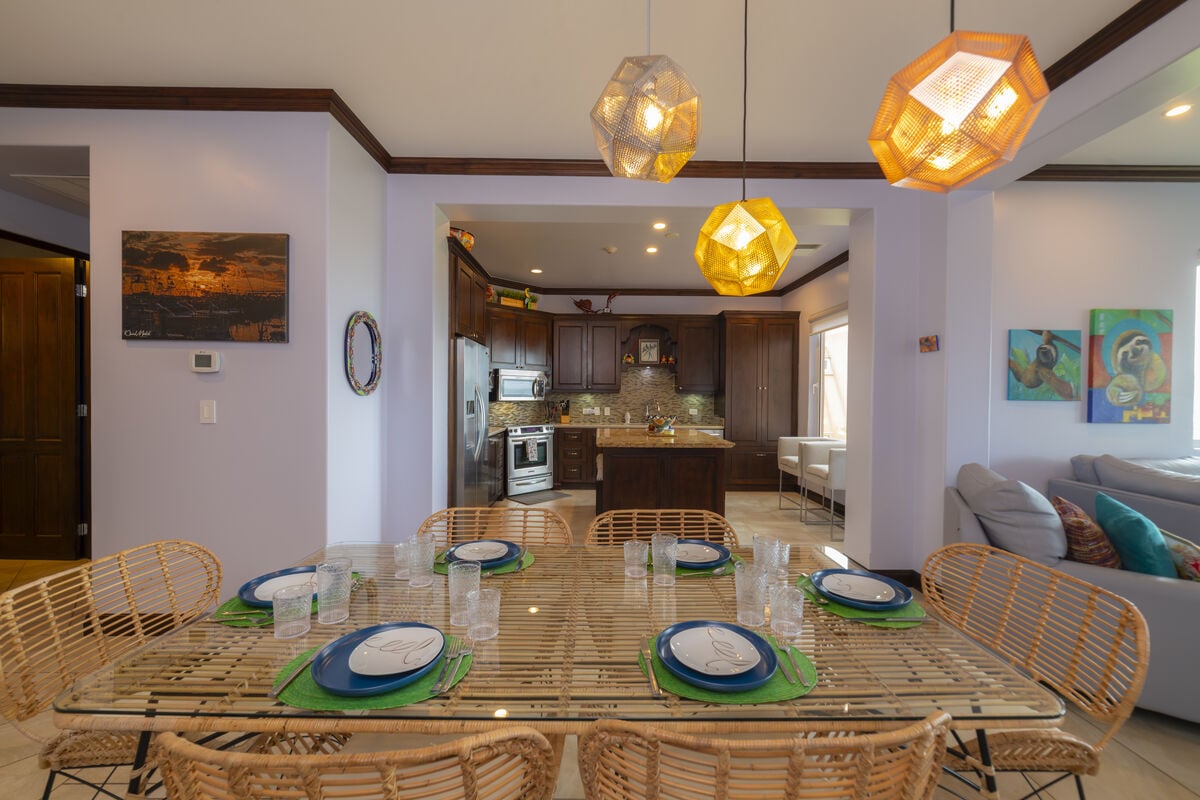 Step into 2,100 sq. ft. of refined living space, featuring an open-concept layout, gourmet kitchen, and spacious covered terrace that frames unforgettable sunsets. Imported Italian ceramic tiles, Costa Rican hardwood cabinetry and doors, high ceilings, and central A/C with energy-efficient systems create a cool, elegant ambiance throughout.