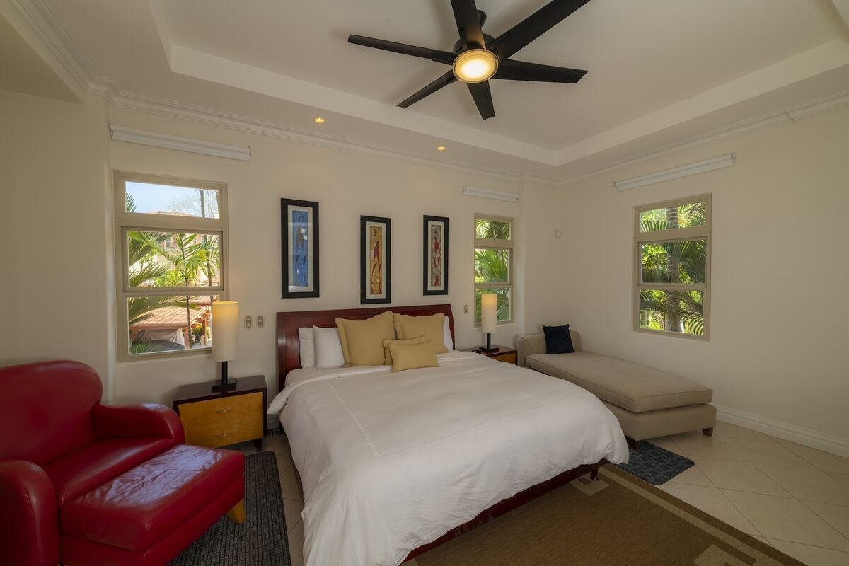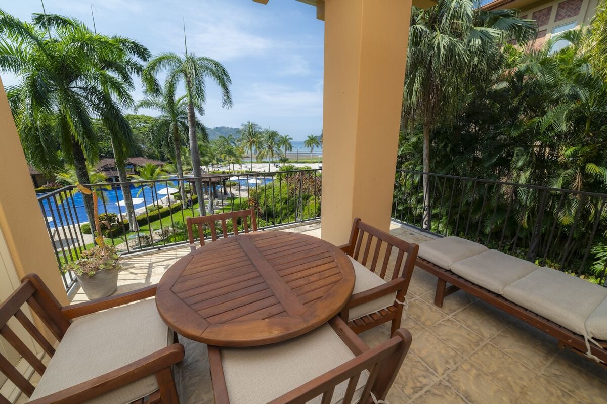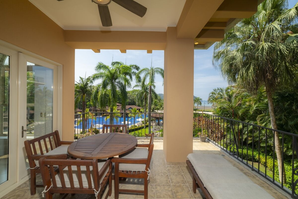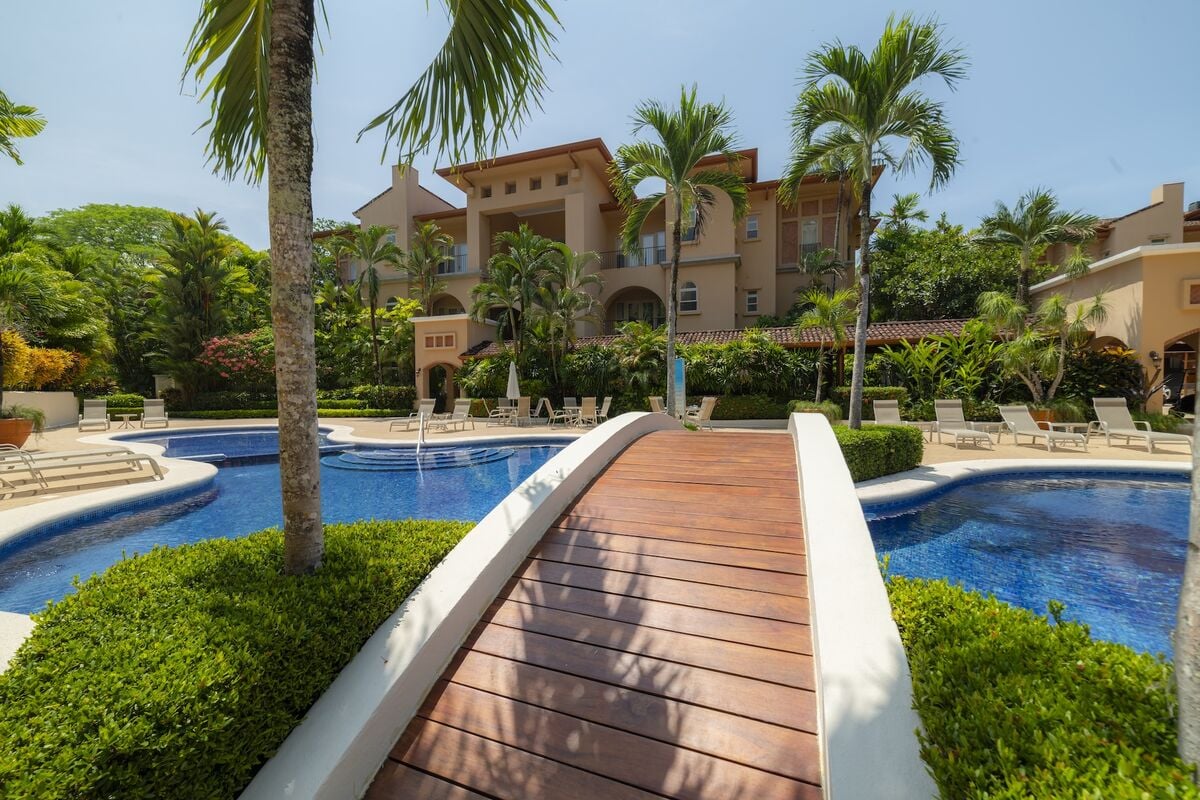 This luxurious 3,200 sq. ft. Spanish Mediterranean condo features 3 bedrooms and 3.5 bathrooms, offering ocean views and views of the exclusive Beach Club. Enjoy vaulted ceilings, Italian ceramic flooring, and spacious terraces. The gourmet kitchen and open-concept living area provide an ideal space for entertaining, while central air, a washer, and dryer add modern convenience. Experience true Costa Rican luxury in a beautiful, private setting.