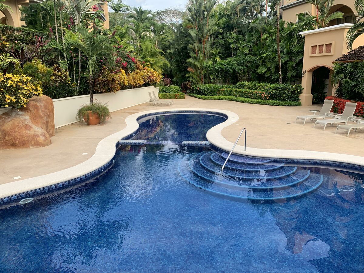 Community amenities: two free-form swimming pools with waterfall, a large Jacuzzi, barbecue areas, and lush landscaping. Air-conditioned gym in neighbor community Veranda, private covered parking, and 24hrs guarded gate entry. Private access to the beach club.