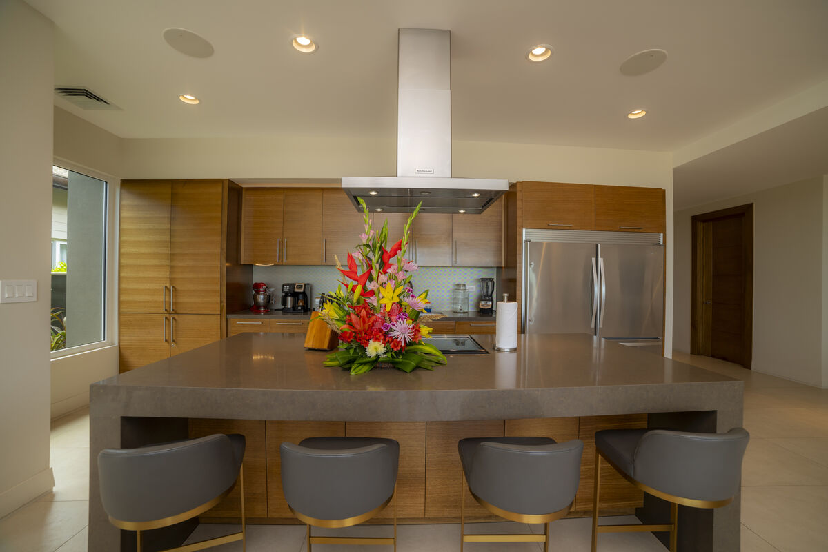 The interiors of Casa Blue Sail can be summed up in two words: thoughtful luxury. The kitchen is testament to this with its functional design and premium fittings. Take a crack at a new recipe or recreate your favorites with the help of high-quality appliances, including a stove, oven, refrigerator, dishwasher, microwave, toaster, blender, and coffee maker.
