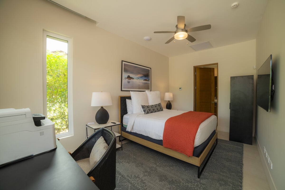 The other three bedrooms are sanctuaries of comfort, each boasting ensuite bathrooms. These rooms are designed to cater to your every need. Casa Blue Sail also features a casita (a smaller guest house) containing two connected bedrooms, a bathroom, and a private entrance.