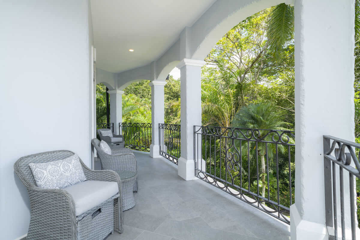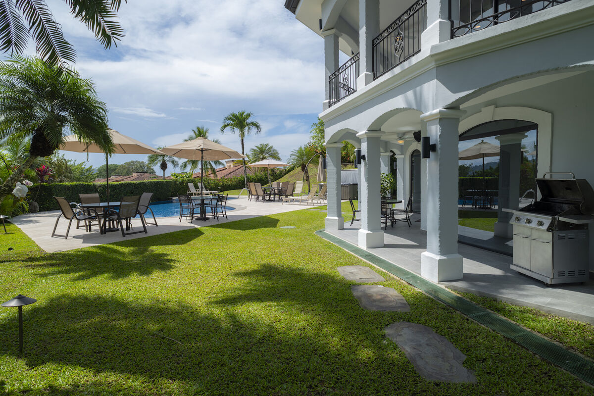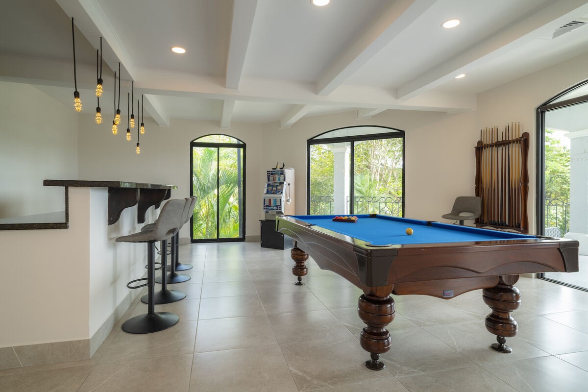 Casa Patron features classical colonial architecture and 5,900 sq. ft. of interior living space. Amenities include free-form swimming pools & premium jacuzzi spa, a large game room with a Championship pool table, a barbecue area, and lush landscaping.