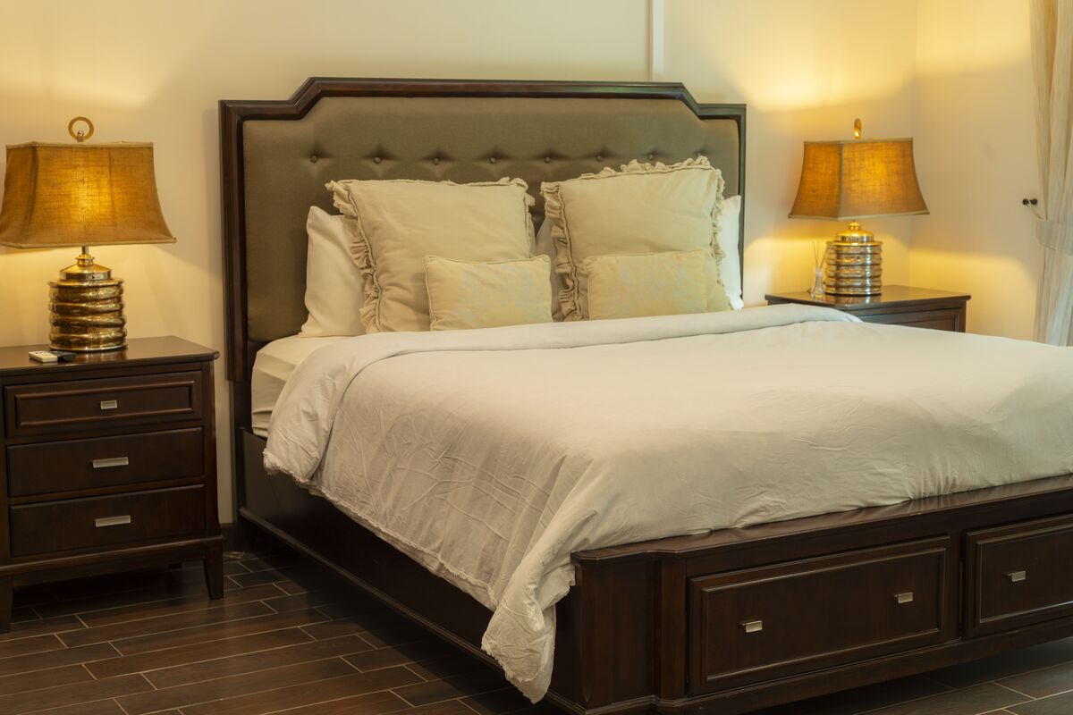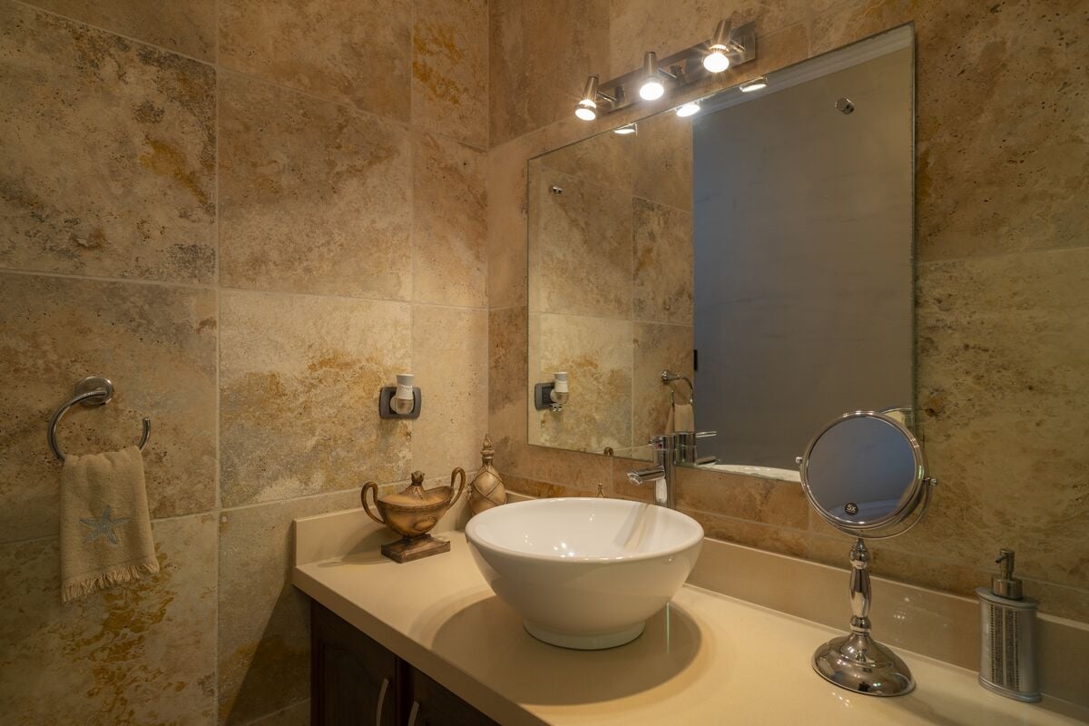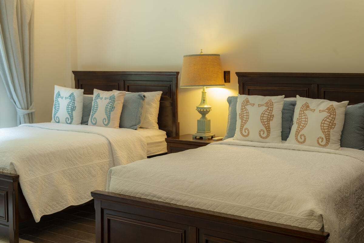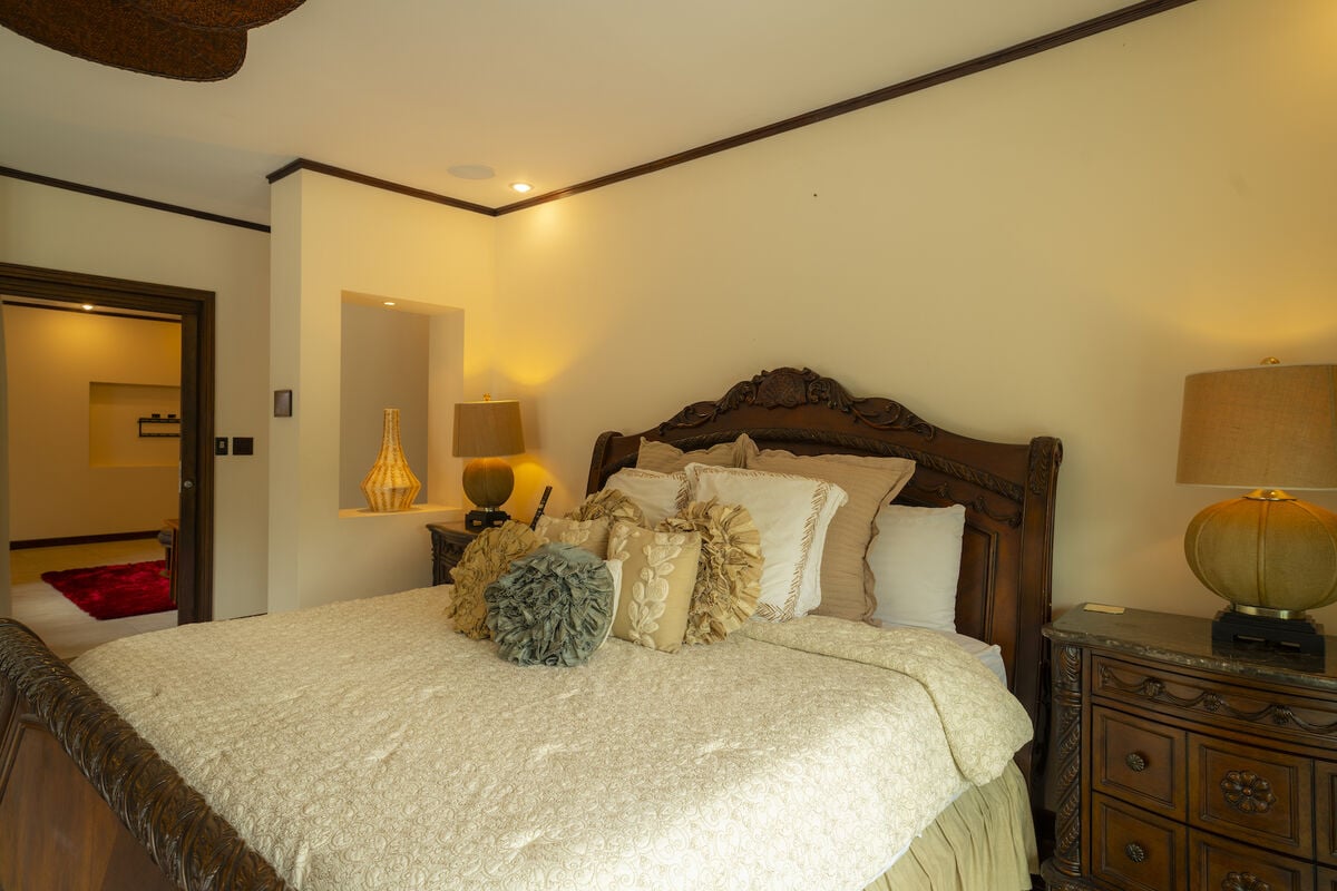 Each of the four bedrooms includes an en-suite bathroom with high-end finishes, premium bedding, flat-screen TVs, and calming jungle or garden views. The primary suite also offers a spa-style bath and a connected bedroom with two twin beds—perfect for guests traveling with children.