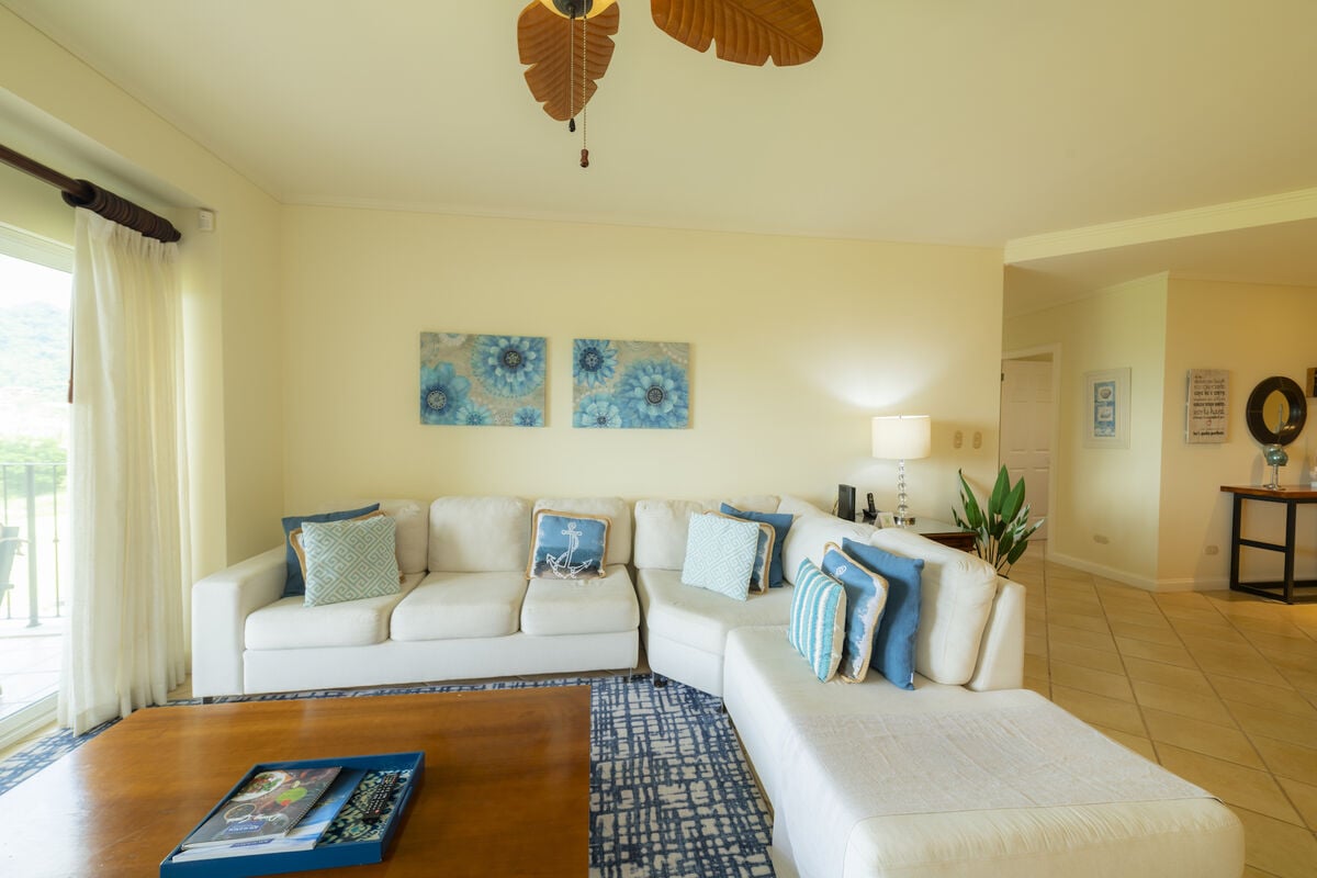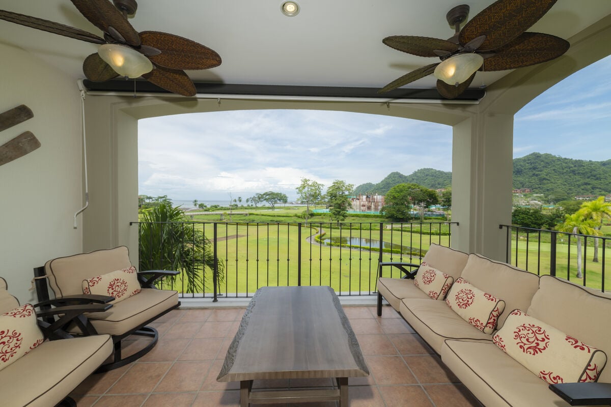 Escape to the perfect Costa Rican getaway at Del Mar 2A, where Mediterranean-inspired design meets modern comfort. This spacious 1,800 sq. ft. condo offers 3 bedrooms, 2 full bathrooms, and a fresh, open interior designed for relaxation. The gourmet kitchen comes fully equipped, and the airy living and dining spaces are ideal for gathering with loved ones. Step out onto the covered balcony and take in breathtaking panoramic views of the ocean and La Iguana Golf Course perfect for enjoying a quiet morning or watching the sunset. With central air, a full-sized washer and dryer, and luxurious furnishings, Del Mar 2A is your home away from home.